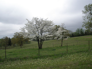 The photos were all taken on the way through "the country" between her house and mine. This piece of property actually butts up to the back of our property. We were amazed at how close it really is after the property was logged last year. The logging definitely opened up the sky to the dogwoods. They are solidly peppered across the slope.